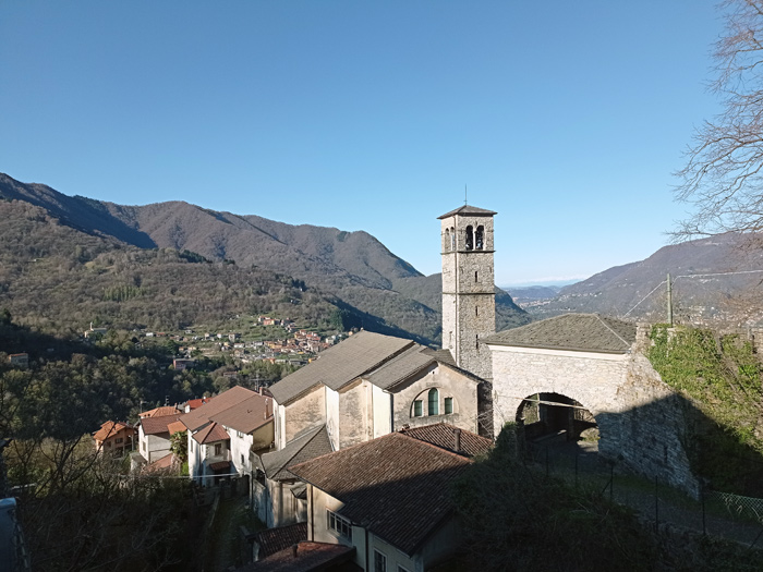 Depuis l'arrêt de bus, nous commençons à monter entre les maisons de Palanzo. Arrivés au centre du village, une flèche sur la droite indique la direction de l'ancien pressoir (il torchio) ; après une visite de cet ouvrage séculaire, nous longeons l'église de Sant'Ambrogio et continuons l'ascension par la via Monte Palanzone. Le sentier est raide mais pavé ; nous nous immergeons dans une forêt de hêtres et de châtaigniers. Au croisement, nous tournons à droite vers la Bocchetta di Palanzo. Devant nous, le soleil continue de monter et, à travers les feuillages, nous commençons à apercevoir le Palanzone avec son sommet caractéristique. Nous franchissons quelques ruisseaux et, en suivant de larges lacets, nous arrivons à la Bocchetta di Palanzo (1210 m).